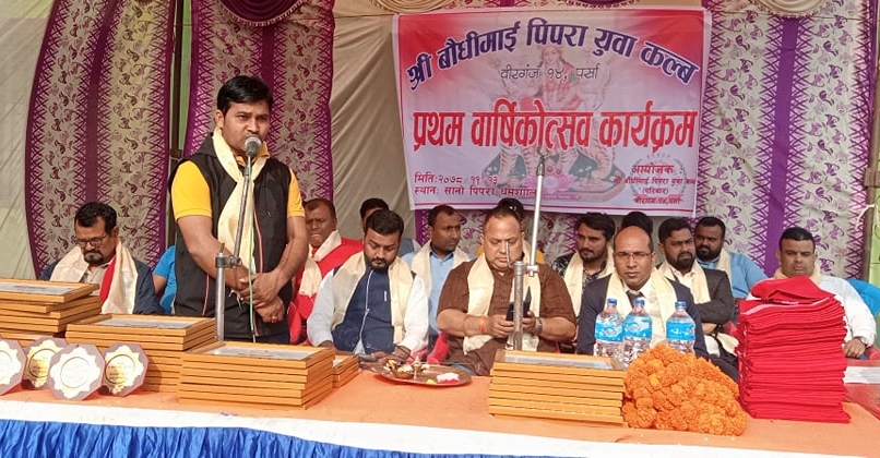वीरगंज । श्री बौद्धिमाई पिपरा युवा क्लबकाे प्रथम बार्षिकाेत्सव आइतबार सम्पन्न भएको छ । वार्षिकाेत्सवकाे अवसरमा आयाेजित कार्यक्रमकाे उदघाटन पर्सा क्षेत्र नं. १ का संघिय सांसद प्रदिप यादवले गरेका थिए ।