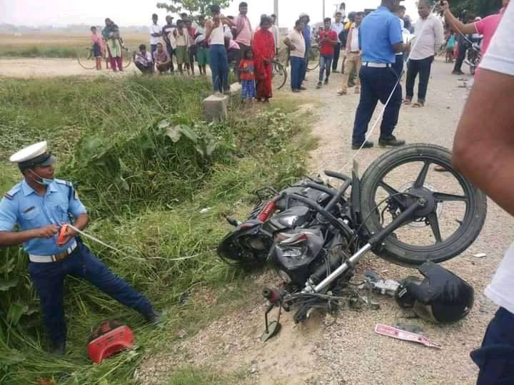 बिहीबार बिहान करिब साढे १० बजेको समयमा ना.३.प १०२६ र प्रदेश २–०३–००४ नम्बरको मोटरसाइकल एकापसमा ठोक्किएका थिए । उक्त दुर्घटनामा दुवै मोरटरसाइकल चालकको घटनास्थलमै मृत्यु भएको प्रहरीले जनाएको छ ।