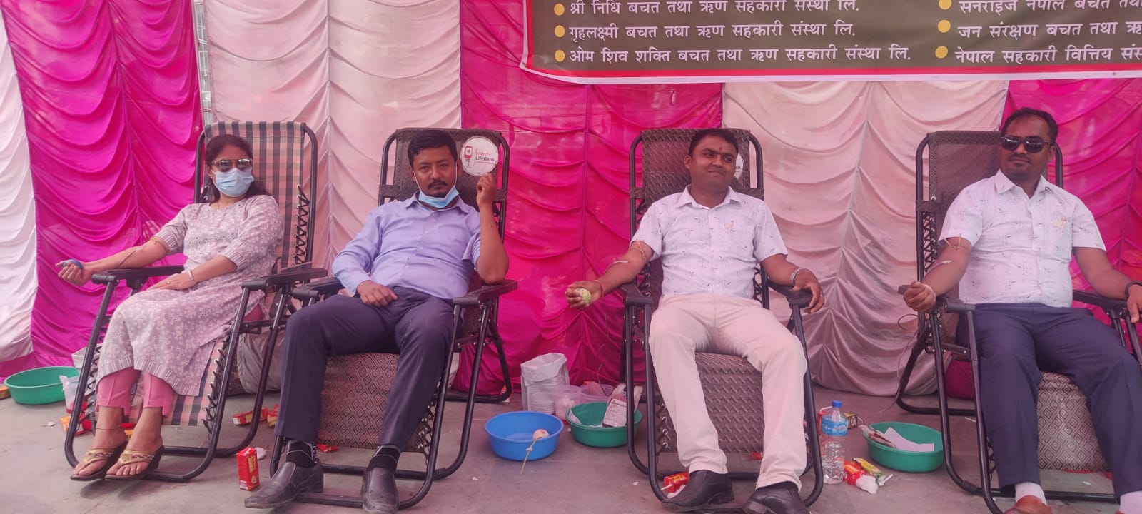 रक्तदान कार्यक्रम कान्तिकपुर बचत तथा ऋण सहकारी संस्था, श्रीनिधि बचत तथा ऋण सहकारी संस्था, गृहलक्ष्मी बचत तथा ऋण सहकारी संस्था, ओम शिव शक्ति बचत तथा ऋण सहकारी संस्था, सुविधा बचत तथा ऋण सहकारी संस्था, सुर्या बचत तथा ऋण सहकारी संस्था, सनराइज नेपाल बचत तथा ऋण सहकारी संस्था, जनसंरक्षण बचत तथा ऋण सहकारी संस्था र नेपाल सहकरी वित्तिय संस्था लिमिटेडकाे सहयाेगमा भएकाे थियाे ।