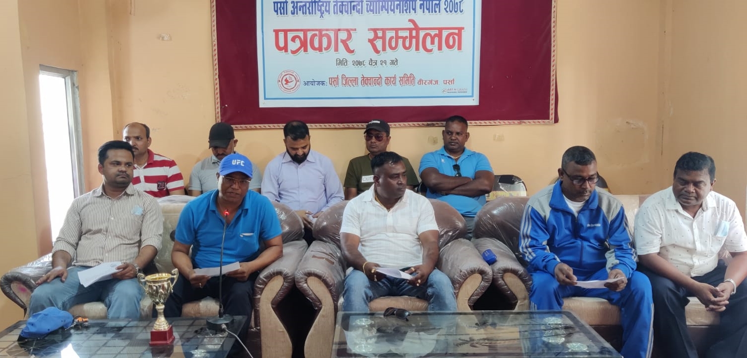कार्यक्रम संयाेजक बिरेन्द्र बहादुर कुर्मी क्षेत्रीकाे अध्यक्षतामा भएकाे पत्रकार सम्मेलनमा तेक्वान्दाेका प्रशिक्षक विजय साह ठाकुर, माेहमद शकिक शेख, नाजिर हुसेन, बरिष्ठ सल्लाहकार निशान्त लामिक्षाने, काेषाध्यक्ष राेशन कलवार, अरुण झा, राजु साह लगायतकाे उपस्थिती रहेकाे थियाे भने कार्यक्रमकाे संचालन नेपाल पत्रकार महासंघ पर्साका सचिव भुषण यादवले गरेका थिए ।