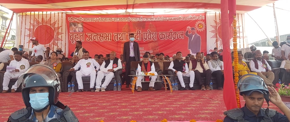 कार्यक्रममा नेकपा एमालेका अध्यक्ष के.पी.शर्मा ओलीले नव प्रबेशी सबै जनालाई फुल माला र अविरकाे टिका लगाएर पार्टीमा प्रवेश गराएका थिए ।
