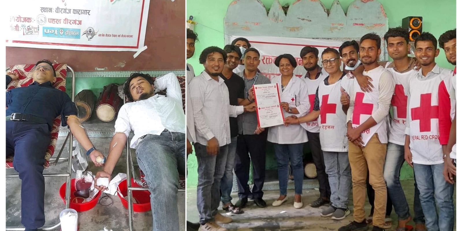 वीरगंज । पहल संस्था वीरगंजकाे आयोजनामा शनिबार वीरगंज कारागारमा रक्तदान कार्यक्रम सम्पन्न भएकाे छ । वीरगंज कारागारको सहयोगमा भएकाे कार्यक्रममा दुई महिलासहित २४६ जनाले रक्तदान गरेका छन् ।