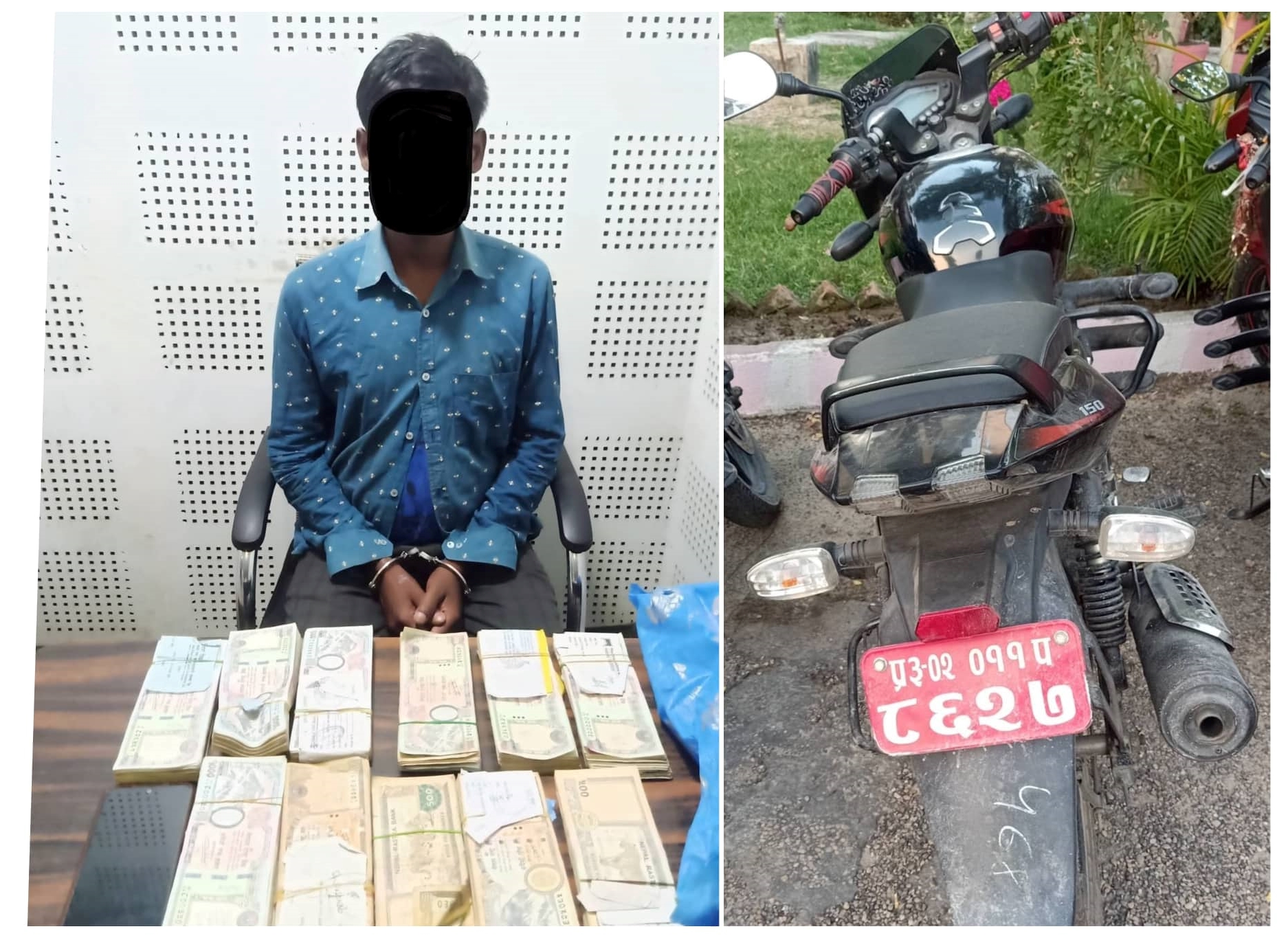 उक्त मोटरसाइकल र रकम बरामद गरी निजलाई नियन्त्रणमा लिई बैंक तथा वित्तीय संस्था सम्बन्धी ऐन, २०७३ बिरूद्वको कसूरमा पर्सा जिल्ला अदालतबाट ७ दिन म्याद थप गरी अनुसन्धान अगाडि बढाइएको जिल्ला प्रहरी कार्यालय पर्साका प्रवक्ता प्रहरी नायब उपरिक्षक ओमप्रकाश खनालले जानकारी दिए ।