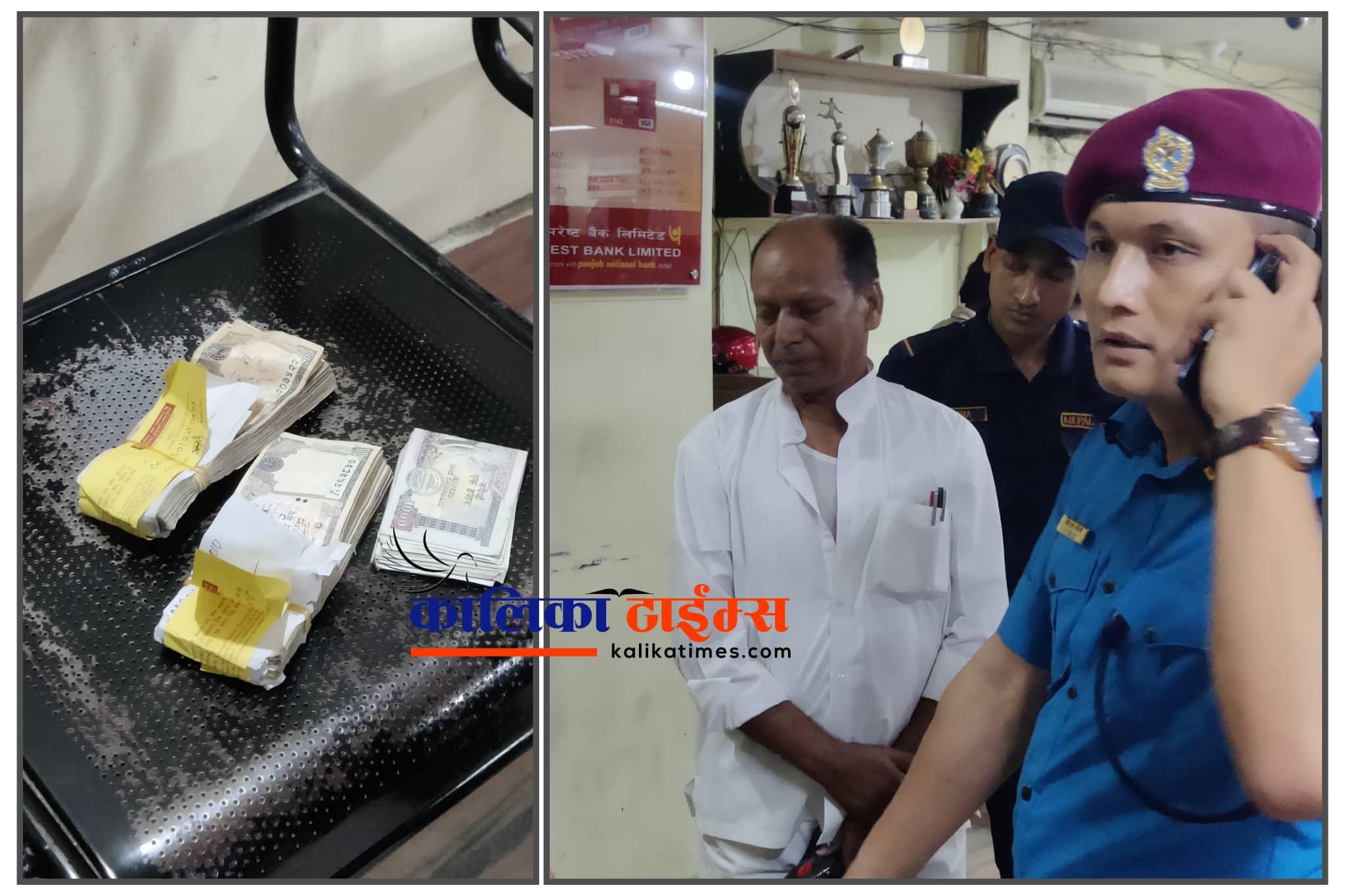 वडा प्रहरी कार्यालय विर्ताका प्रहरी निरिक्षक विशाल मल्ल नेतृत्वकाे प्रहरी टोलीले वीरगंजको आदर्शनगरस्थित एभरेष्ट बैंक भित्रबाट सेवाग्राहीसँग १ लाख २५ हजार नगद रुपैया लिदै गरेको अवस्थामा रंगेहात पक्राउ गरेको छ ।