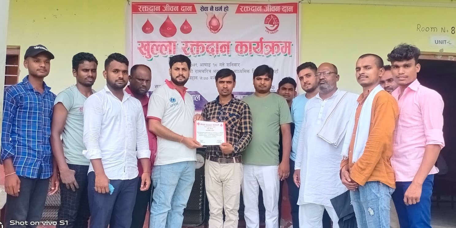 युवा सन्जालको सहकार्य र समाज परिवर्तन नेपालको आयोजनामा भएकाे कार्यक्रममा एमडी हवारी, कृष्णा शर्मा, देवलाल साह, अखलेश पटेल, अनवर आलम, रविन्द्र चाैरसिया, नरेश सहनी, पृथ्वीनारायण बर्णवाल, रन्जन यादव, मनिष यादव, सुरेश कुमार राम, टेक बहादुर विके लगायतकाले रक्तदान गरेका थिए ।