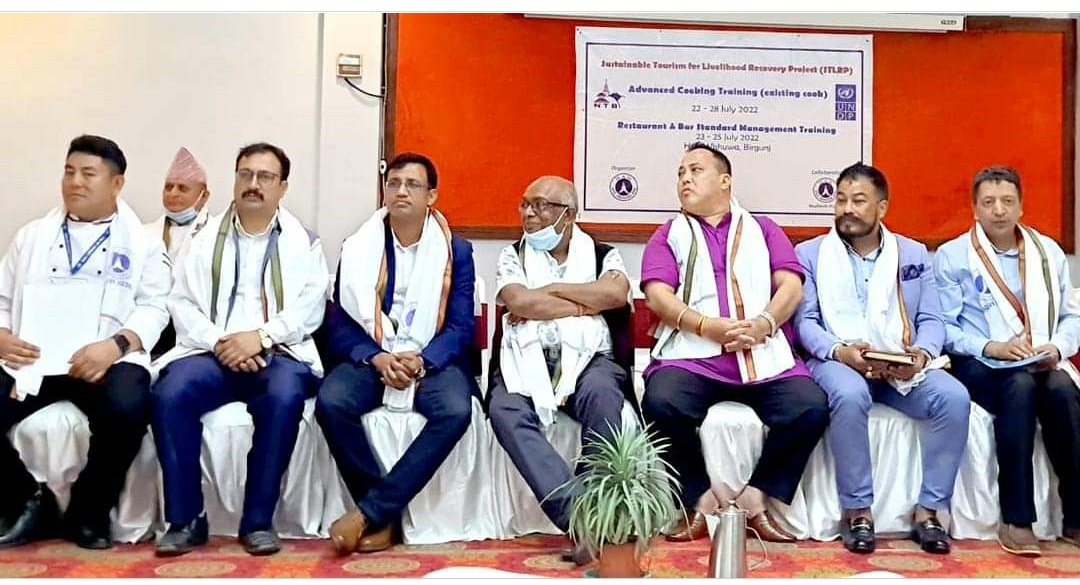 वीरगंज । होटल संघ नेपाल, होटल संघ मधेश प्रदेश नेपाल पर्यटन बोर्ड तथा यूएनडिपीको संयुक्त लगानीमा वीरगंजमा ७ दिने एडभान्स कुक तालिम सुरू भएको छ ।