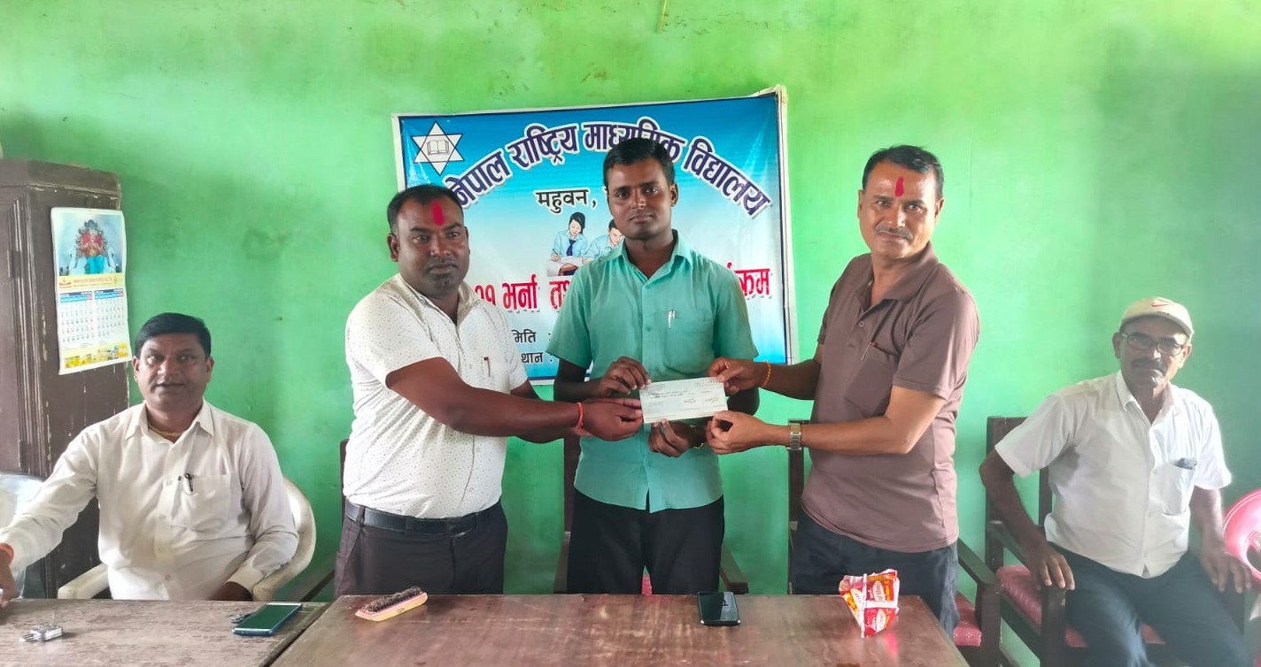 विद्यालयमा कक्षा ११ र १२ संचालनका लागि बिहिबार एक कार्यक्रमका बिच विद्यालयलाई रु २५ हजार ५ सय सहयाेग गरेकाे नेता साहले वताए । सहयाेग रकम बराबरकाे चेक विद्यालयका प्रधानाध्यापक भरत गिरिलाई हस्तान्तरण गरेकाे नेता साहले जानकारी गराए ।
