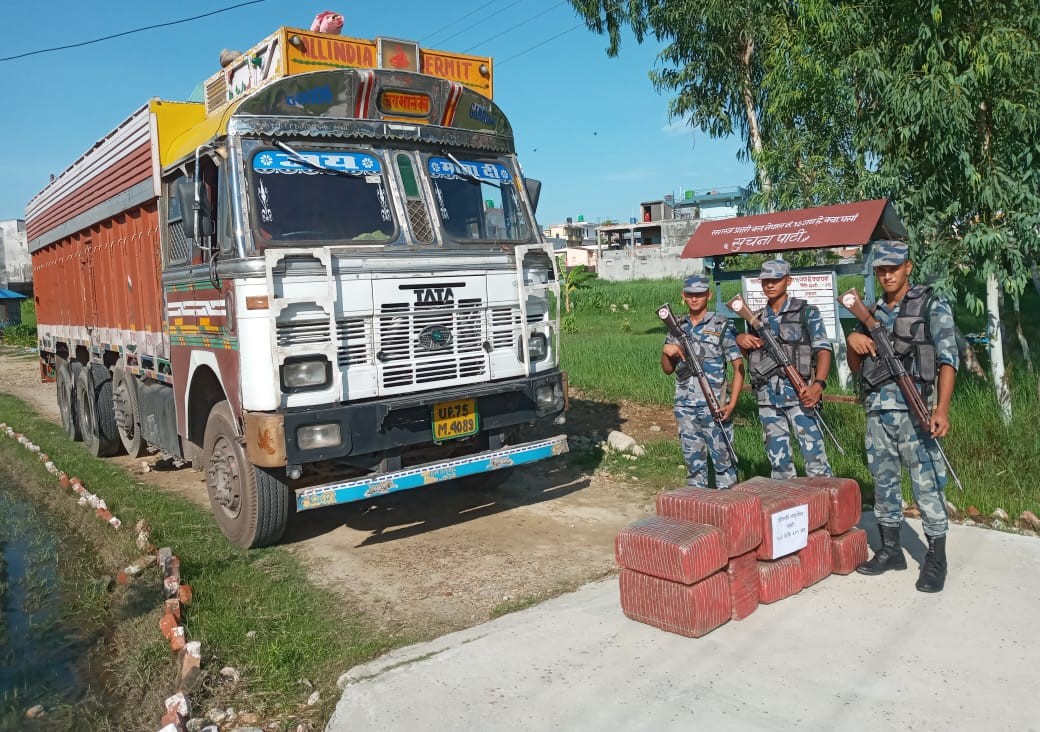 ड्राइपाेर्ट परवानीपुर सडक खण्डस्थित परवानीपुर पेट्राेल पम्पदेखि अनदाजी १५० मिटर उत्तर तर्फ बहुअरी चाेकमा राेकी राखेकाे भारतिय नम्बरकाे मालवाहक ट्रकबाट लागु औषध गाँजा बरामद भएकाे सशस्त्र प्रहरी बल नं. १३ गणका सुचना अधिकारी सशस्त्र प्रहरी उपरिक्षक संताेष कुमार बस्नेतले जानकारी दिए ।