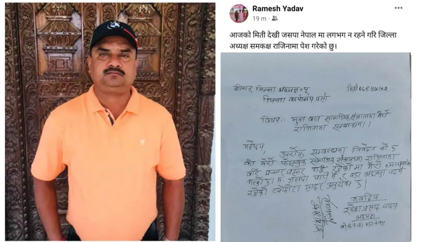 वडाध्यक्ष यादवले आफ्नाे फेसबुकमा हस्तलिखित राजिना पाेष्ट गरेका थिए । साे राजिनामा पत्रमा आफूले पार्टी र पद दुबैबाट राजिनामा दिएकाे जनाएका थिए । त्यसकाे केही समयपछि पुन: उनले हस्तलिखित एक पत्र पाेष्ट गर्दै आफूले राजीनामा नदिएकाे जनकारी गराए ।