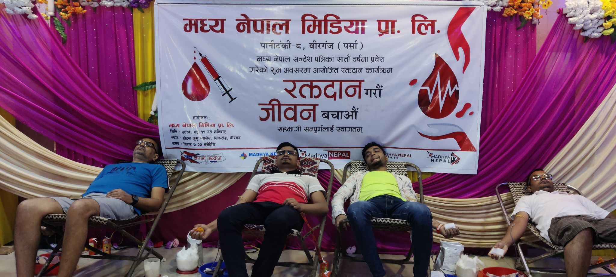 मध्य नेपाल सन्देशकी सम्पादक कविता खड्काकाे अध्यक्षतामा कार्यक्रममा नेपाल पत्रकार महासंघ मधेश प्रदेशका महासचिव श्याम बन्जारा, बीबीसी नेपाली सेवाकी पर्सा सम्बाददाता माधुरी महतो, सावित्रा संग्रौला, जरिना खातुन, अनिता साह तेली, शिवनाथ प्रसाद यादव, प्रविण खड्का, जियालाल साह, रविकुमार गुप्ता, तवरेज अहमद, विन्देश्वर प्रसाद पटेल, निखिल सापकोटा, संदिप कुमार कुर्मी, अजय बानिया, नरेश पटेल लगायतकाले रक्तदान गरेका थिए ।