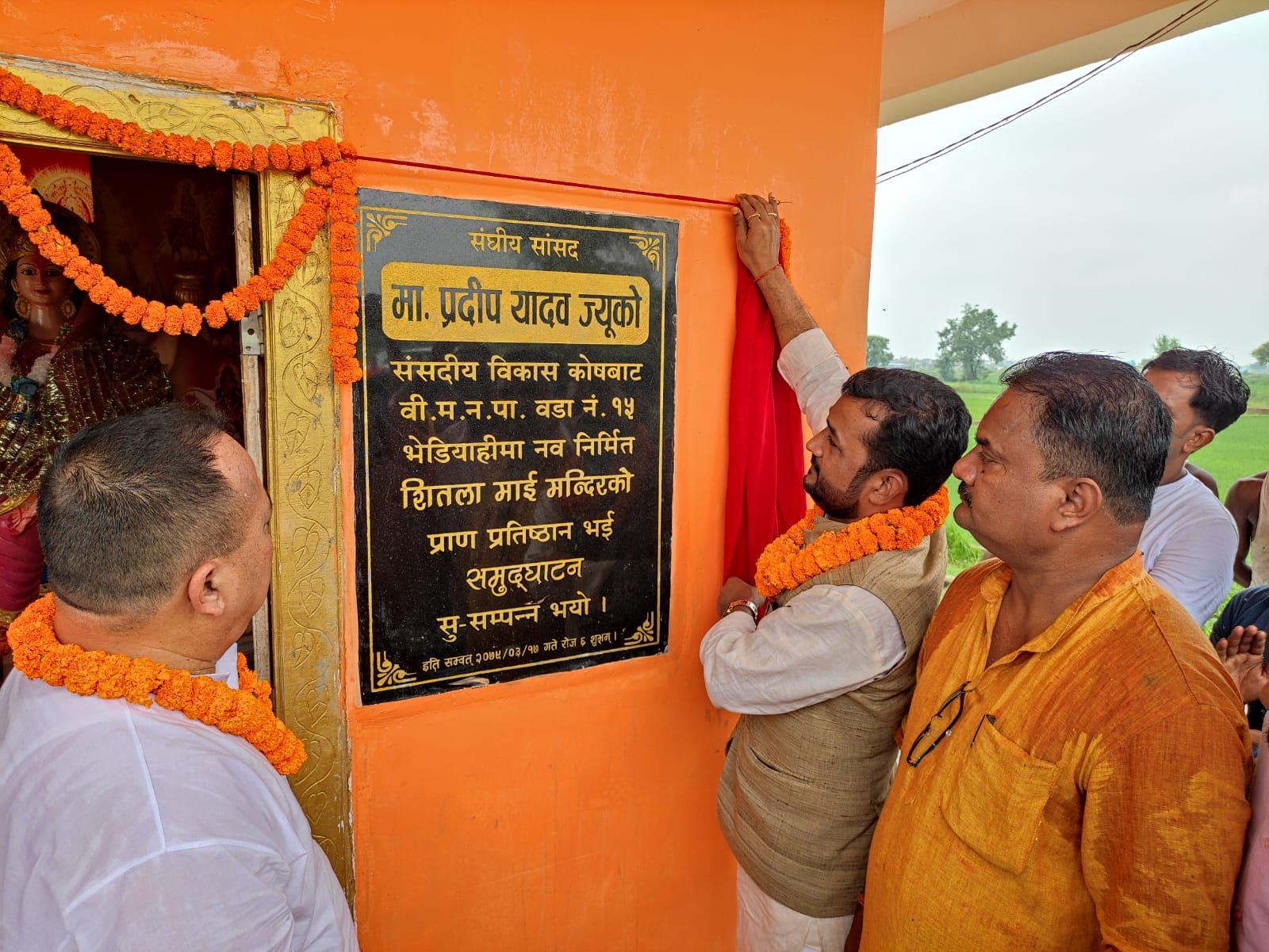 शनिबार गृहनगर वीरगंज आउनु भएका वनमन्त्री यादवले वीरगंज-१५ स्थित भिस्वामा निर्मित शितलामाई मन्दिरको उद्घाटन गरेका हुन् । त्यसैगरी मन्त्री यादवले सोही वडाको भिषवा र भेडियाहीमा निर्मित विवाह भवनको पनि उद्घाटन गरेका थिए ।