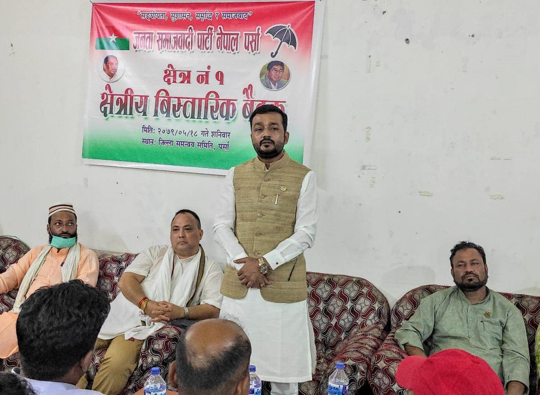 क्षेत्रीय समितिको बैठकमा पार्टीका केन्द्रीय सदस्य एवम् प्रदेश सभा सदस्य करिमा बेगम, जनार्दन यादव, समाजवादी मुस्लिम सङ्घका राष्ट्रिय अध्यक्ष मौलाना नुरुल होदा, वीरगंज महानगरपालिकाका मेयर राजेशमान सिंह लगायत पार्टीका नेताहरुको उपस्थिति रहेको थियो ।