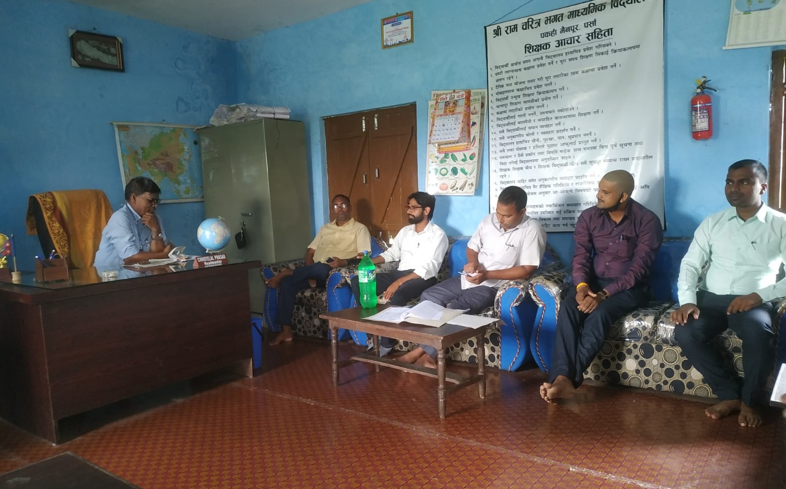 विद्यालयमा बिहानै पुगेका टोलीले बिधालयको हरेक कक्षाकोठाको अवलोकन, बेन्चडेक्स, भौतिक संरचना, शैक्षिक सामग्री, शिक्षकको पदपुर्ती, अभाव, बिधार्थी संख्याको अनुगमन गरी प्रध्यानाध्यापक छोटेलाल प्रसाद सहित शिक्षकहरु संग बिद्यालय कै कार्यालयमा बैठक बसी समस्याको सामाधान गरिएकाे गाउँपालिका अध्यक्षका स्वकिय सचिव बिनोद मेहताले बताए ।