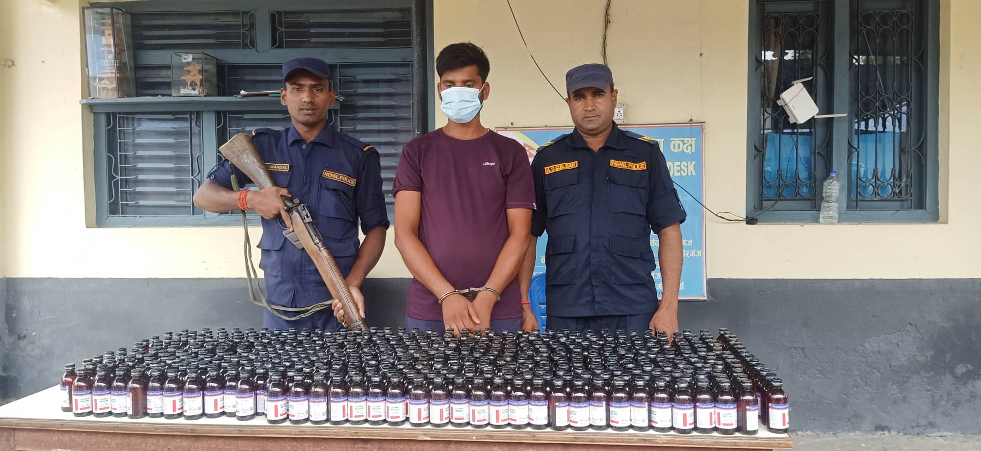 साहले बाेकेकाे जुटको बोरा भित्र काेडिवेल कफ सिरफ १०० एमएलकाे ४७४ बाेत्तल फेला परेको जिल्ला प्रहरी कार्यालय पर्साका प्रवक्ता प्रहरी नायब उपरिक्षक दिपक गिरीले वताए । पक्राउ परेका साहमाथी लागु औषध सम्बन्धी कसूरमा अनुसन्धान भइरहेकाे उनले जानकारी दिए ।