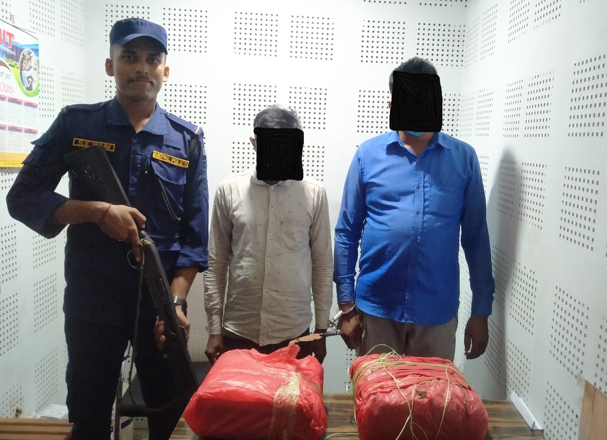 वीरगज । पर्साकाे जिराभावानी गाउँपालिका वडा नं. १ जगतियाबाट प्रहरीले लागु औषध गाँजासहित दुई जनालाई पक्राउ गरेकाे छ । ईलाका प्रहरी कार्यालय सेढवाबाट खटिएको प्रहरी टोलीले पर्सा धोबिनी गा.पा.वडा नं. ५ निवासी ४५ बर्षिय नन्दलाल दास र छिपहरमाई गाउँपालिका वडा नं. ३ निवासी ३३ बर्षिय बाघा यादवलाई पक्राउ गरेकाे हाे ।
