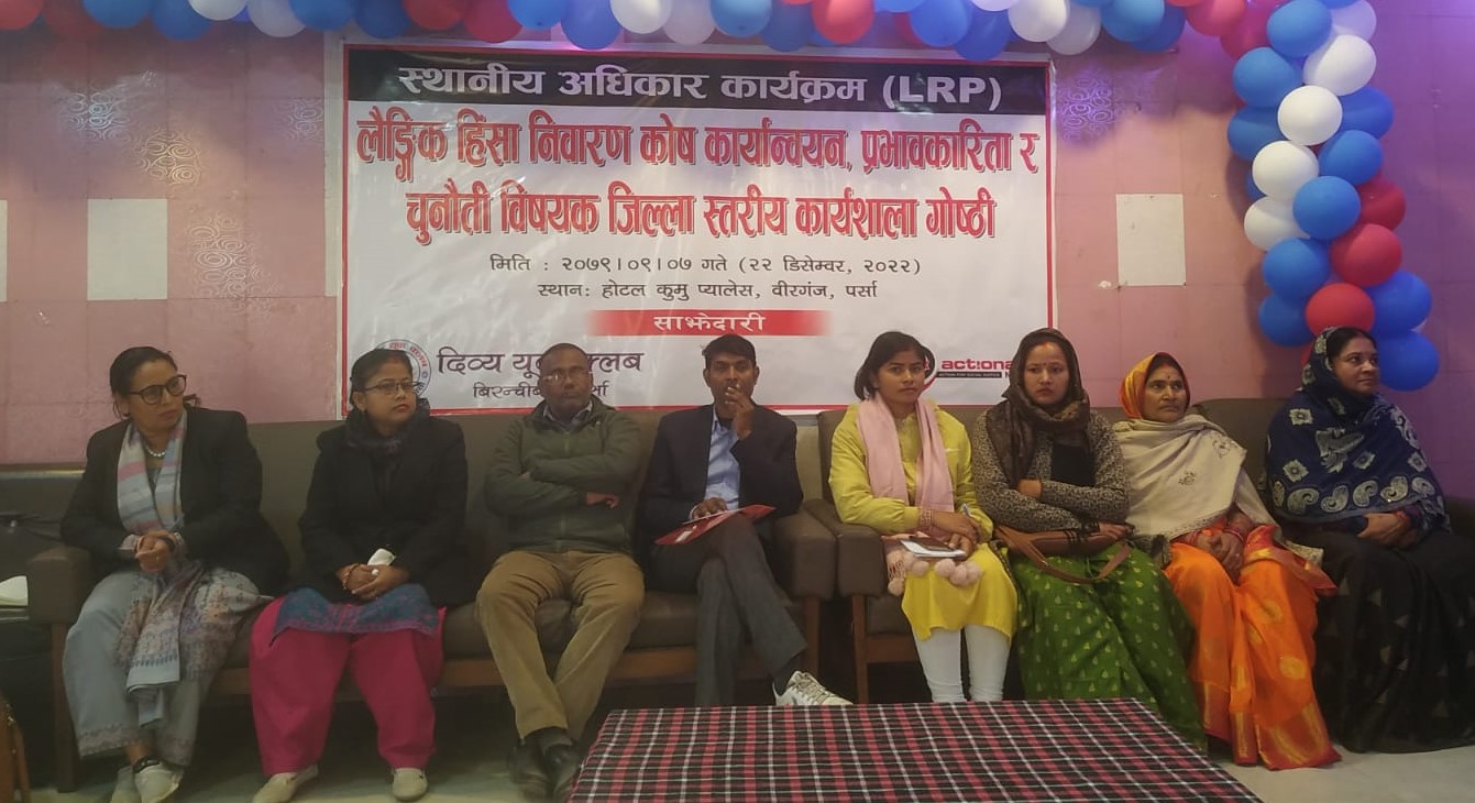 एक्सन एड नेपाल र दिब्य युवा क्लब बिरन्चीवर्वाको संयुक्त साझेदारीमा संचालित स्थानिय अधिकार कार्यक्रम अन्तर्गत वीरगंजकाे लिंक राेडस्थित कुमु प्यालेस हाेटलमा भएकाे कार्यशाला गाेष्ठी सम्पन भएको हाे ।