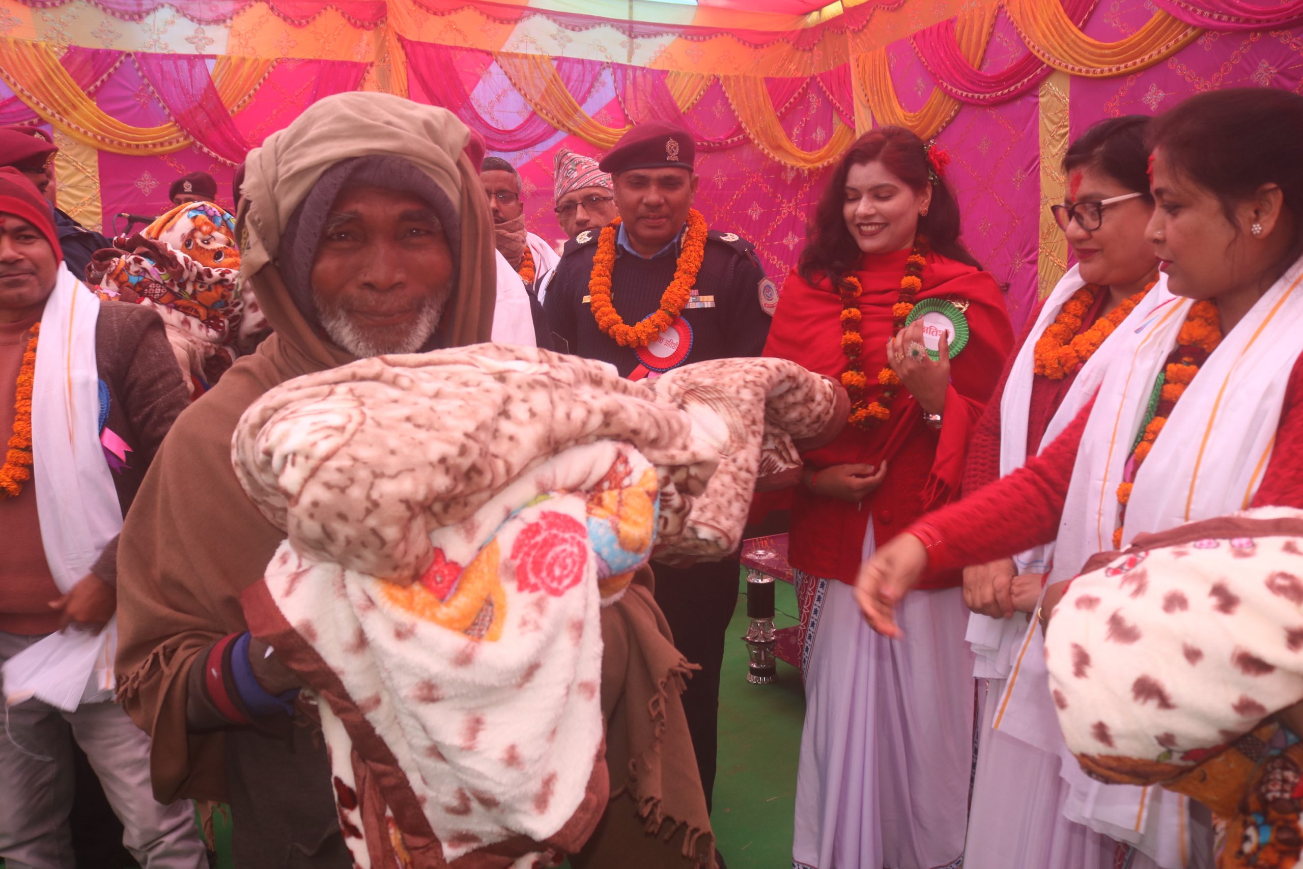 साेही कार्यक्रममा महागढीमाई नगरपालिका वडा नं.२ र ७ का २२३ जना विपन्न परिवारलाई नेपाल प्रहरी श्रीमती संघकी अध्यक्ष कुसुम लता सिंह लगायत अन्य सदस्यहरुले २/२ थान गरी जम्मा ४४६ थान न्यानो कम्बल वितरण गरेका थिए ।