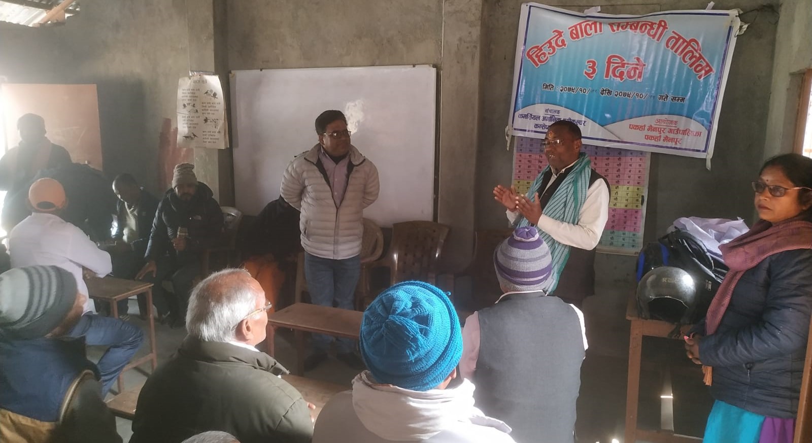वीरगंज । पर्साको पकहा मैनपुर गाउँपालिका वडा नम्बर दुई सुर्जाहामा साेमबार हिउँदे बाली सम्बन्धी ३ दिने तालिम शुरु भएकाे छ । तालिमकाे एक कार्यक्रमका बिच गाउँपालिका अध्यक्ष सुरेश मेहताले उद्घाटन गरेका हुन् ।