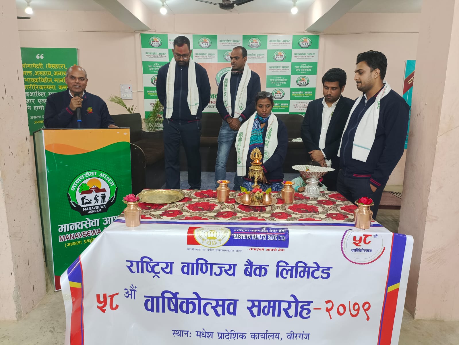 वीरगंज । राष्ट्रिय वाणिज्य बैंककाे ५८ औं बार्षिकाेत्सवकाे अवसरमा वीरगंजमा सत्ताव्यापी कार्यक्रम सम्पन्न भएकाे छ । बैंककाे मधेश प्रादेशिक कार्यालय वीरगंजले रक्तदान सहितकाे विभिन्न कार्यक्रमकाे आयाेजना गरि सत्ताव्यापी रुपमा बार्षिकाेत्सव मनाएकाे हाे ।