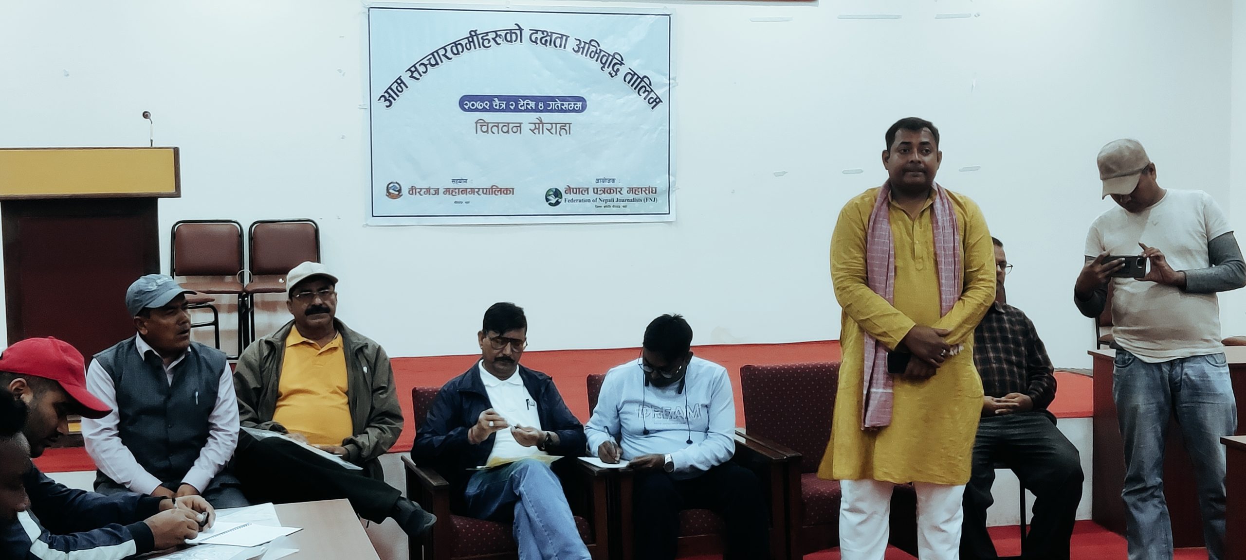 नेपाल पत्रकार महासंघ पर्सा शाखाको आयोजना र वीरगन्ज महानगरपालिकाको आर्थिक सहयोगमा तीन दिने तालिम सुरु भएको हो ।