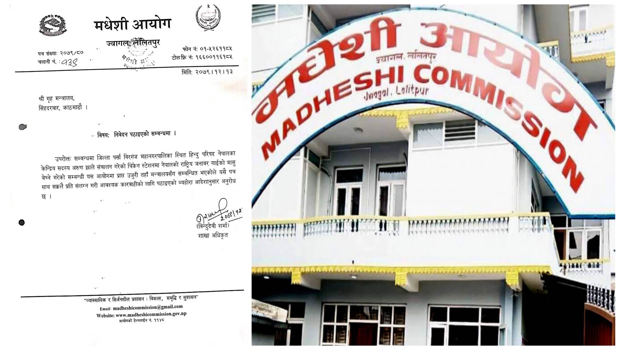 वीरगंज । मधेसी आयोगले गाईको मासु बेच्ने वीरगंजकाे चिकेन स्टेसनलाई कारबाही गर्न गृह मन्त्रालयलाई पत्र पठाएको छ ।