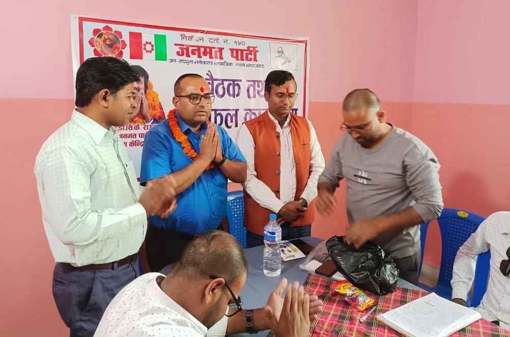 वीरगंज । जनमत पार्टी पर्साकाे बैठक तथा छलफल कार्यक्रम शुक्रबार सम्पन्न भएकाे छ । वीरगंजस्थित हिमाल हाेटलमा बसेकाे बैठकमा नवनियुक्त जिल्ला इन्चार्ज र जिल्ला संयोजकले पदभार समेत ग्रहण गरेका हुन् ।