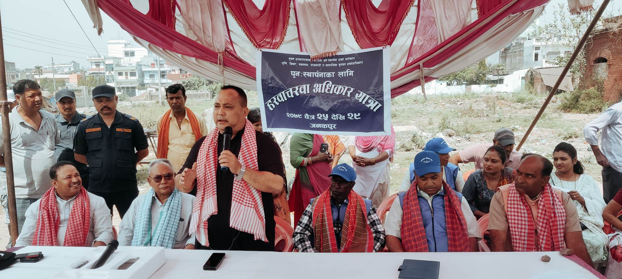 उनले भने “सरकारले यही वर्ष साउन २ गते मुक्तिको घोषणा ग¥यो, हामीले पनि सहमति जनायाैं तर नौ महिनासम्म पुनःस्थापनाका कुनै कार्यक्रम ल्याइएन र ल्याउने छाटकाट पनि छैन”, केन्द्र सरकारले मुक्तिको घोषणा ग¥यो तर स्थानीय तह र अन्य निकायले बसिरहेको खोला, सडक, जङ्गल छेउ र ऐलानी जग्गाबाट उठिबास लगाउन थाल्यो । अब न्याय कसलाई माग्ने ? आफ्नो मागको सुनुवाइ होस् भनेर अधिकार यात्रा गर्दैछौँ ।”