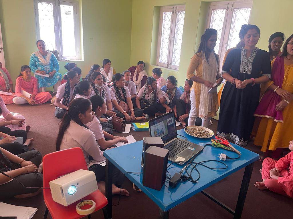 उनीहरुलाई व्यावहारिक एवम् सामग्रीमा आधारित शिक्षणका सम्बन्धमा झापाकी पूजा संग्रौला मरासिनीले प्रशिक्षण दिइरहेकी छिन् ।