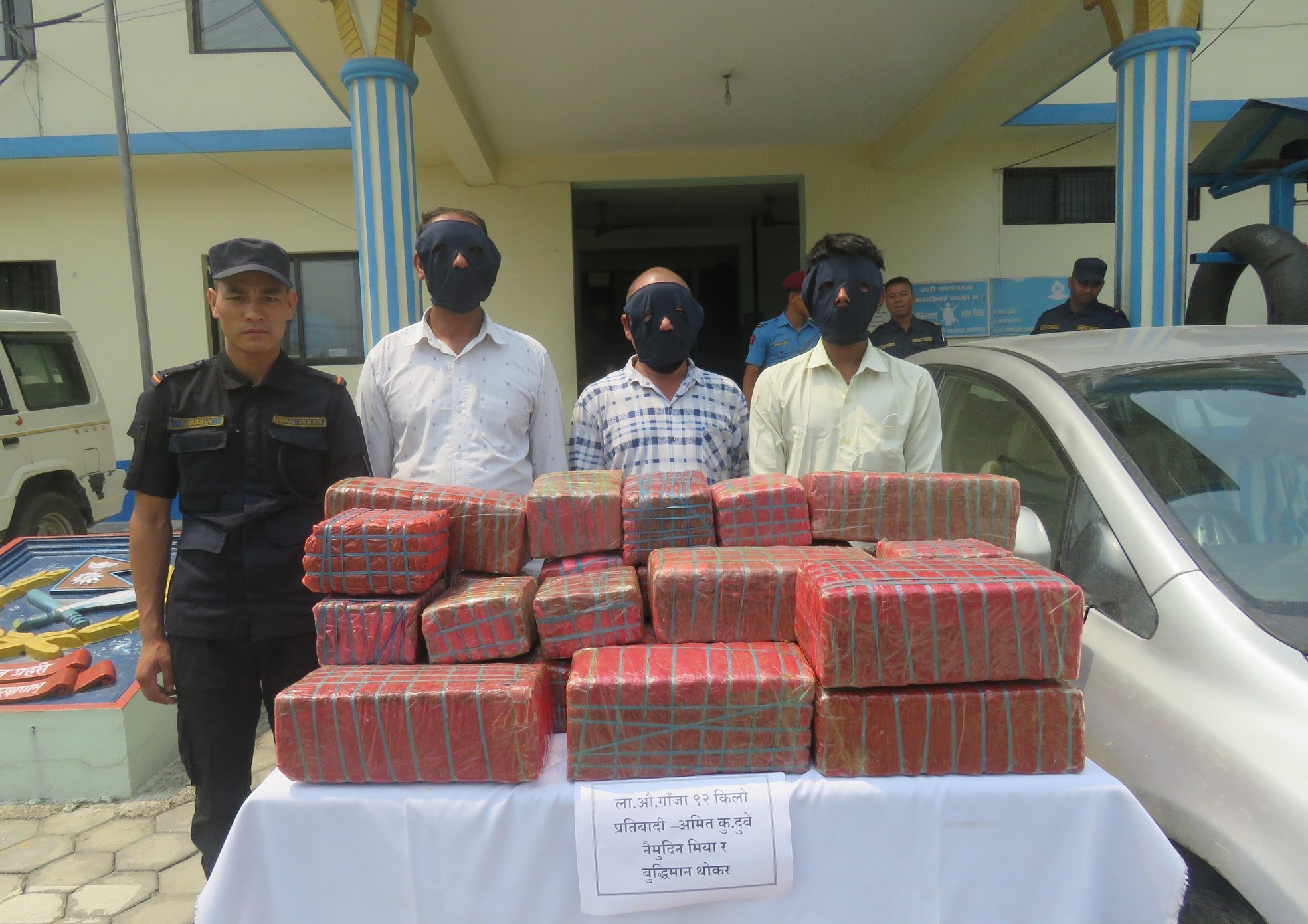बिआर०१बिएन१५१८ नम्बरको भारतिय कारलाई रोकी चेकजांच गर्ने क्रममा कार चालक दुबे, कारमा सवार मियाँ र मकवानपुरका थोकरलाई फेला पारी निजहरुको शरीर तथा उक्त कारको खानतलासी गर्दा कार भित्र पछाडीको सिट पछाडी फल्स बटन बनाई लुकाई छिपाई गरी ल्याएको अवस्थामा लागु औषध गाँजा ९२ किलो ग्राम फेला परेको प्रहरीले जनाएकाे छ ।
