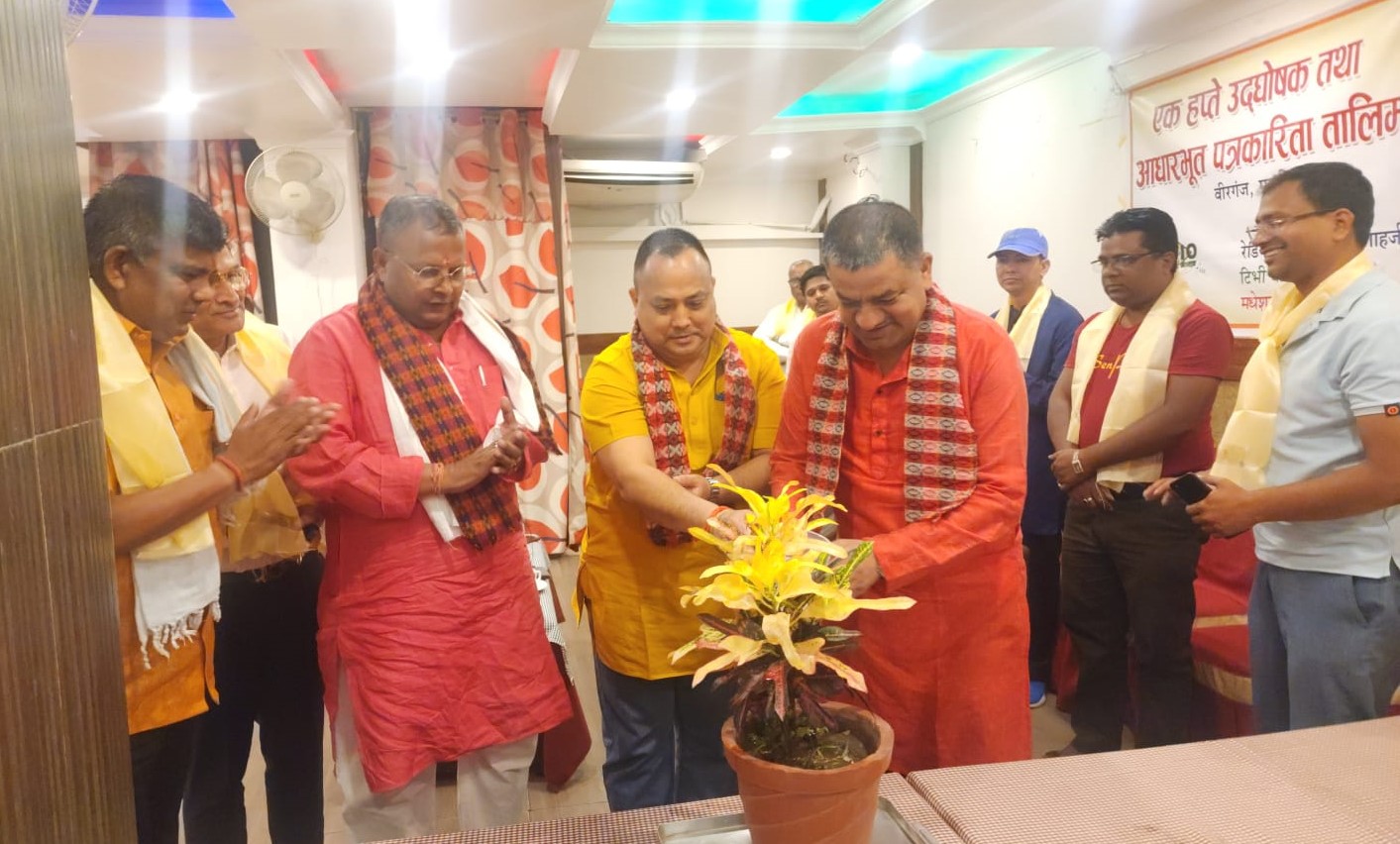 वीरगंज । रेडियाे वीरगंजले एक हप्ते उदघाेषक तथा आधारभुत पत्रकारिता तालिम सञ्चालन गरेकाे छ । वीरगंजस्थित हाेटल पुजनमा आइतबारदेखि सञ्चालित तालिमको वीरगंज महानगरपालिकाका मेयर राजेशमान सिंहले उद्घाटन गरेका हुन् ।