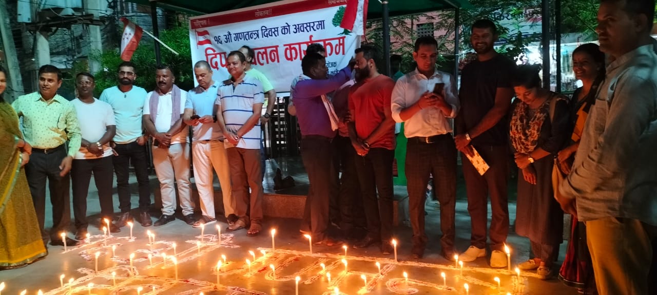 पाेखरिया । नेपाली कांग्रेस पर्सा क्षेत्र नं. १ काे १ क्षेत्रिय समितिकाे आयाेजनामा साेमबार सांझ वीरगंजमा दीप प्रज्वलन गरिएकाे छ । १६ ओैँ गणतन्त्र दिवस्को अवसरमा वीरगंजकाे माइस्थान पार्कमा दीप प्रज्वलन गरिएकाे हाे ।