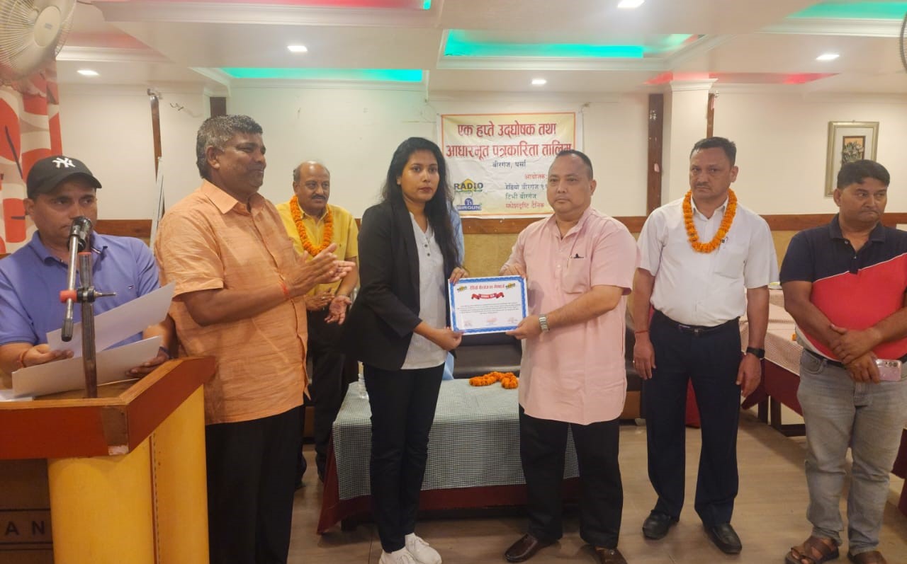 रेडियो वीरगंज, टिभि वीरगंज र मधेशदृष्टिका अध्यक्ष ध्रुब साहको अध्यक्षतामा भएको तालिमको ससमापन कार्यक्रममा तालिममा भाग लिएका प्रशिक्षार्थीहरुलाई प्रमाणपत्र समेत वितरण गरिएको थियो । कार्यक्रममा तालिमका मुख्य प्रशिक्षक समेत रहेका वरिष्ठ साहित्यकार एंव पत्रकार डाक्टर नवराज लम्साल र मधेसदेष्टि पत्रिकाका प्रधान सम्पादक रामकुमार एलनलाई दोशल्ला ओढाएर सम्मानित पनि गरिएको थियो ।