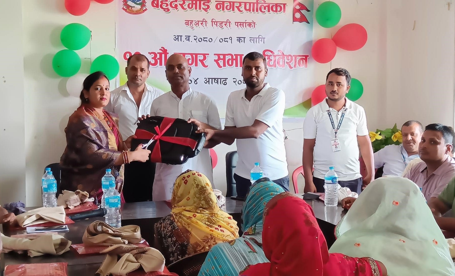 वीरगञ्ज । पर्साको बहुदरमाई नगरपालिकाको दशौ नगर सभा साेमबार सम्पन्न भएकाे छ । नगरपालिकाले नगर सभाबाट पारित आ.व. २०८०/०८१ काे निती तथा कार्यक्रम जिल्ला मै पहिलाे सार्वजनिक समेत गरेकाे छ । असार १० गते भित्र गर्नु पर्ने सभा बहुदरमाईले यस बर्ष असार ४ गते नै गर्न सफल भएकाे हाे ।