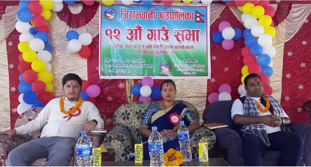 वीरगंज । पर्साको जिराभवानी गाँउपालिकाको १२ औं गाउँ सभाबाट पारित आ.व. २०८०/०८१ काे नीति, कार्यक्रम तथा बजेट आइतबार सार्वजनिक गरिएकाे छ । गाउँपालिका वडा नं. ३ स्थित बरात भवनमा भएकाे कार्यक्रममा गाँउपालिका अध्यक्ष अनोज चौधरीले आगामी आर्थिक वर्ष २०८०/०८१ का लागि ३४ करोड ८० लाख रुपैयाको बजेट प्रस्तुत गरेका थिए ।