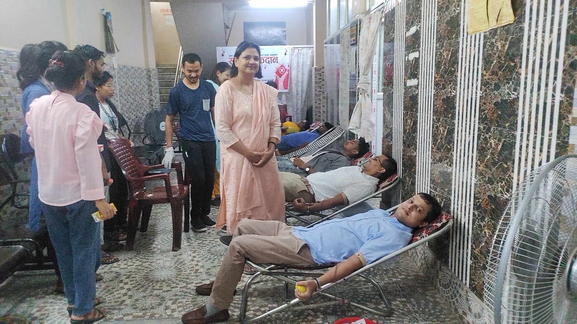 कार्यक्रममा डा.सुनिल यादव, डा. मनिष खन्ना, अनिल पटेल, राधा श्रेष्ठ, एन्जिला पटेल लगाएत ३५ जनाले रक्तदान गरेको उनले जानकारी दिइन ।
