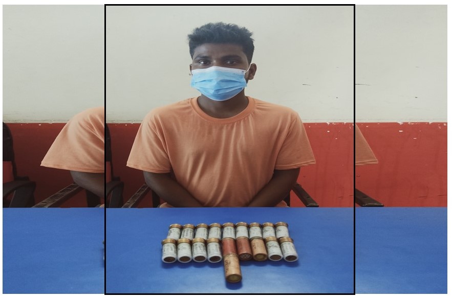 आइतबार राति ९:३० बजेको समयमा वीरगंज महानगरपालिकाकाे वडा नं.१६ भानुचोक स्थित सडकखण्डमा चेकिङ टोलीले चेकजाँच गर्ने क्रममा संकास्पदरूपमा हाँतमा झोला बोकी पैदल हिँडि बसपार्कतर्फ आउदै गरेको अवस्थामा कुशवाहाकाे खानतलासी गर्दा सर्टगनको १९ राउण्ड गाेली फेला परेको प्रहरीले जनाएकाे छ ।