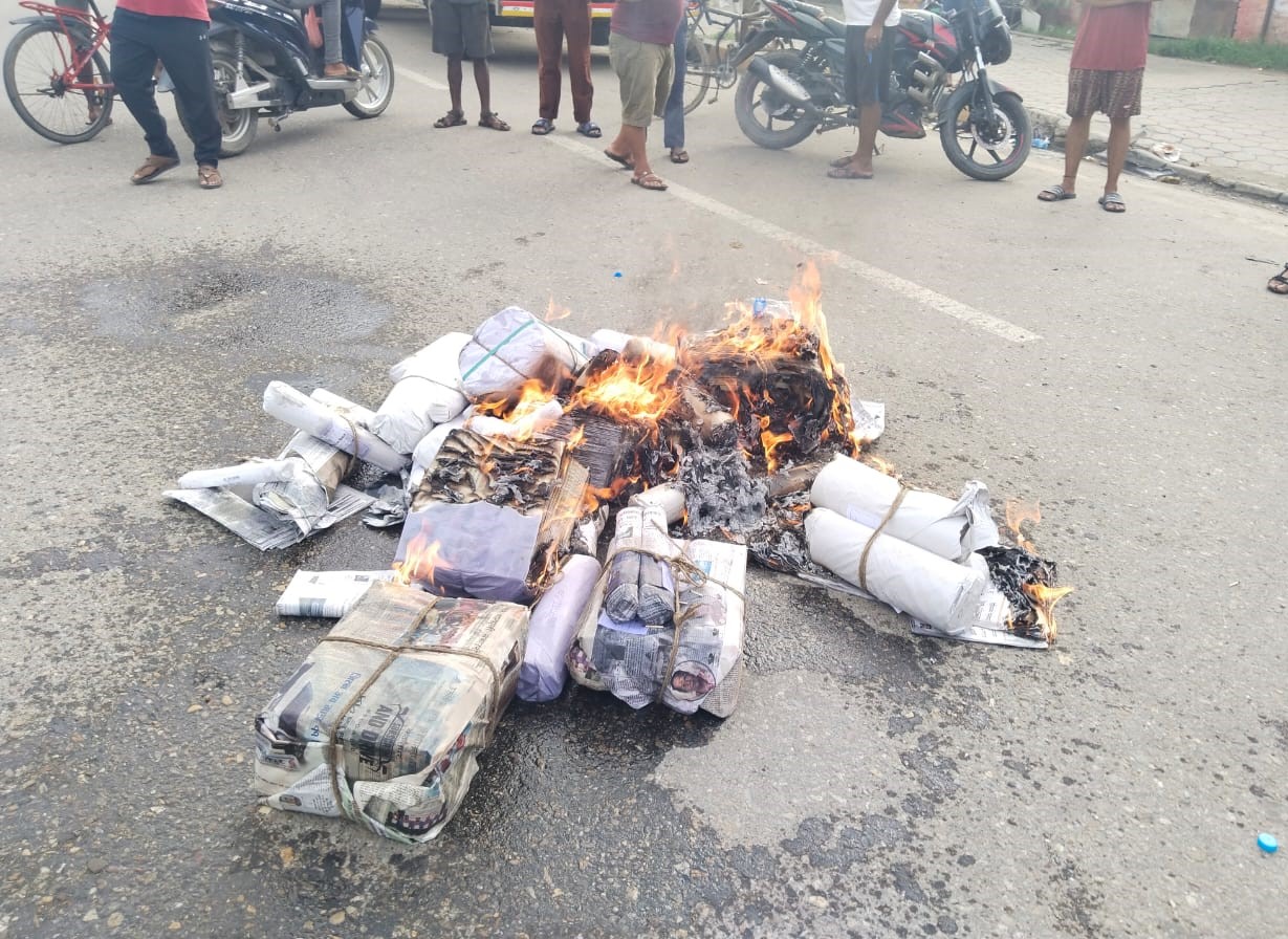 वीरगंज । हिन्दु विराेधी कान्तिपुर भन्दै मंगलबार वीरगंजमा कान्तिपुर दैनिक पत्रिका जलाइएको छ । हिन्दू धर्ममाथिको आस्था र विश्वासमाथि प्रहार गर्ने समाचार लेखेको भन्दै केहि व्याक्तिहरुकाे समूहले बाइपास सडकमा मंगलबार बिहान पत्रिका जलाएका हुन् ।
