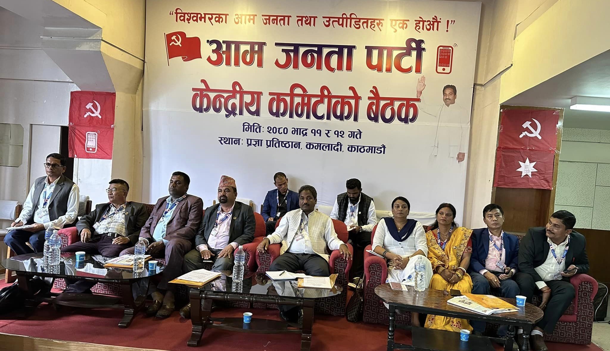 वीरगंज । आम जनता पार्टीकाे भदाै ११ र १२ गते सम्पन्न दाेस्राे केन्द्रिय पूर्ण बैठककाे निर्णय शुक्रबार सार्वजनिक गरिएकाे छ । पार्टी अध्यक्ष प्रभु साहकाे अध्यक्षतामा काठमाडाैंकाे कमलादीस्थित प्रज्ञा प्रतिष्ठानमा बसेकाे बैठककाे ७ निर्णयहरु सार्वजनिक गरिएकाे हाे ।