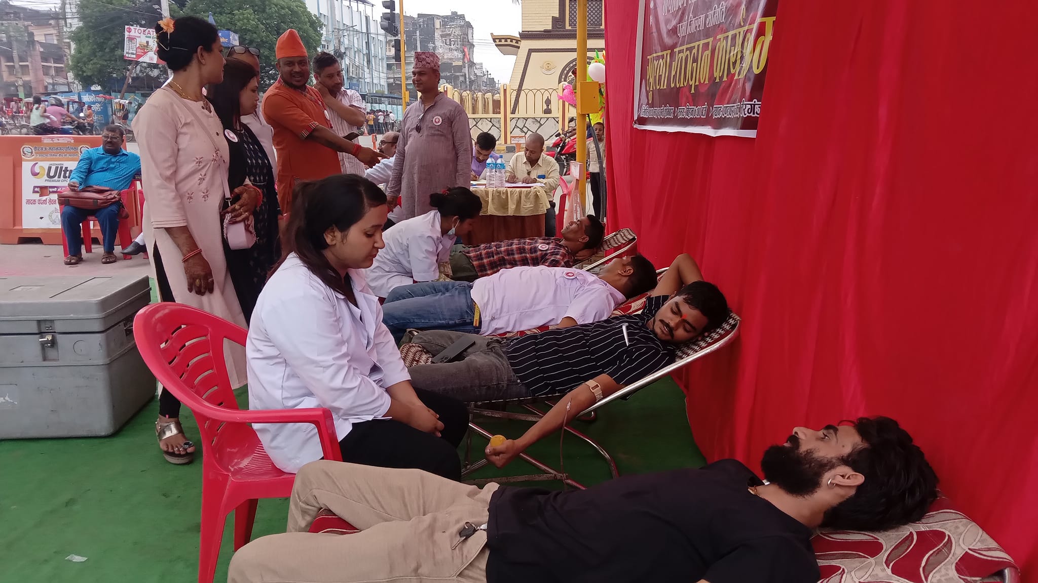 वीरगंज । नेपालका लागी नेपाली पार्टी पर्साकाे आयाेजनामा शनिबार वीरगंजमा रक्तदान कार्यक्रम सम्पन्न भएकाे छ । वीरगंजकाे घण्टाघरस्थित चौकमा भएकाे कार्यक्रममा ७० जनाले रक्तदान गरेकाे रक्त संचार केन्द्र वीरगंजले जनाएकाे छ ।