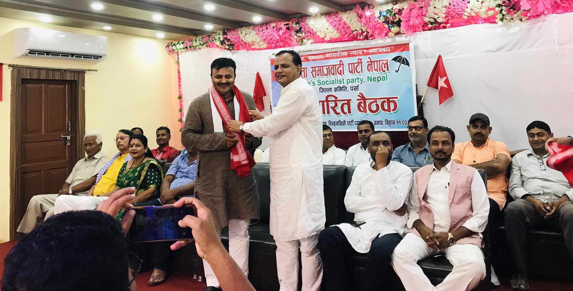 वीरगंज । जनता समाजवादी पार्टी (जसपा) नेपाल पर्साको बिस्तारित बैठक साेमबार वीरगंजमा सप्पन्न भएको छ । जसपा पर्साका जिल्ला अध्यक्ष रामनरेश प्रसाद यादवकाे अध्यक्षता र मधेस प्रदेशको निबर्तमान मुख्यमन्त्री लालबाबु राउतको प्रमुख अतिथ्यमा भएको बैठक सम्पन्न भएकाे हाे ।