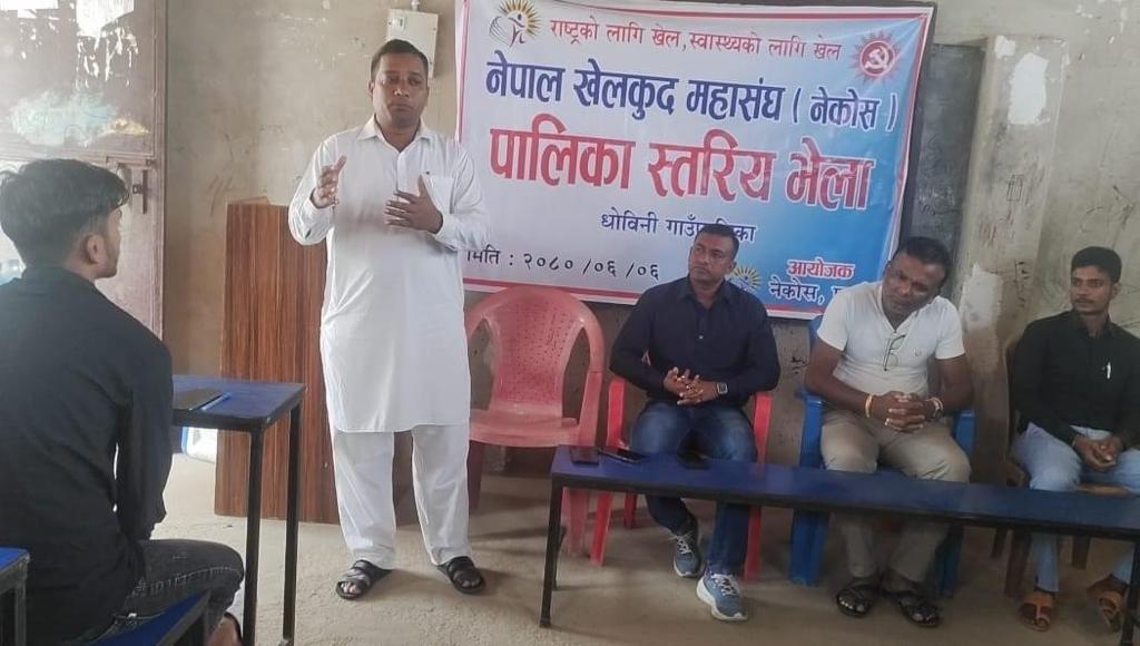 वीरगंज । पर्साको धोबिनी गाँउपालिकामा शनिबार नेकपा एमाले निकट नेपाल खेलकुद महासंघ (नेकोस)को पालिका स्तरिय भेला सम्पन्न भएको छ । नेकपा एमालेका मेधश प्रदेश समिती सदस्य सलाउदिन अहमदको प्रमुख आतिथ्यमा भेला सम्पन्न भएको हो ।