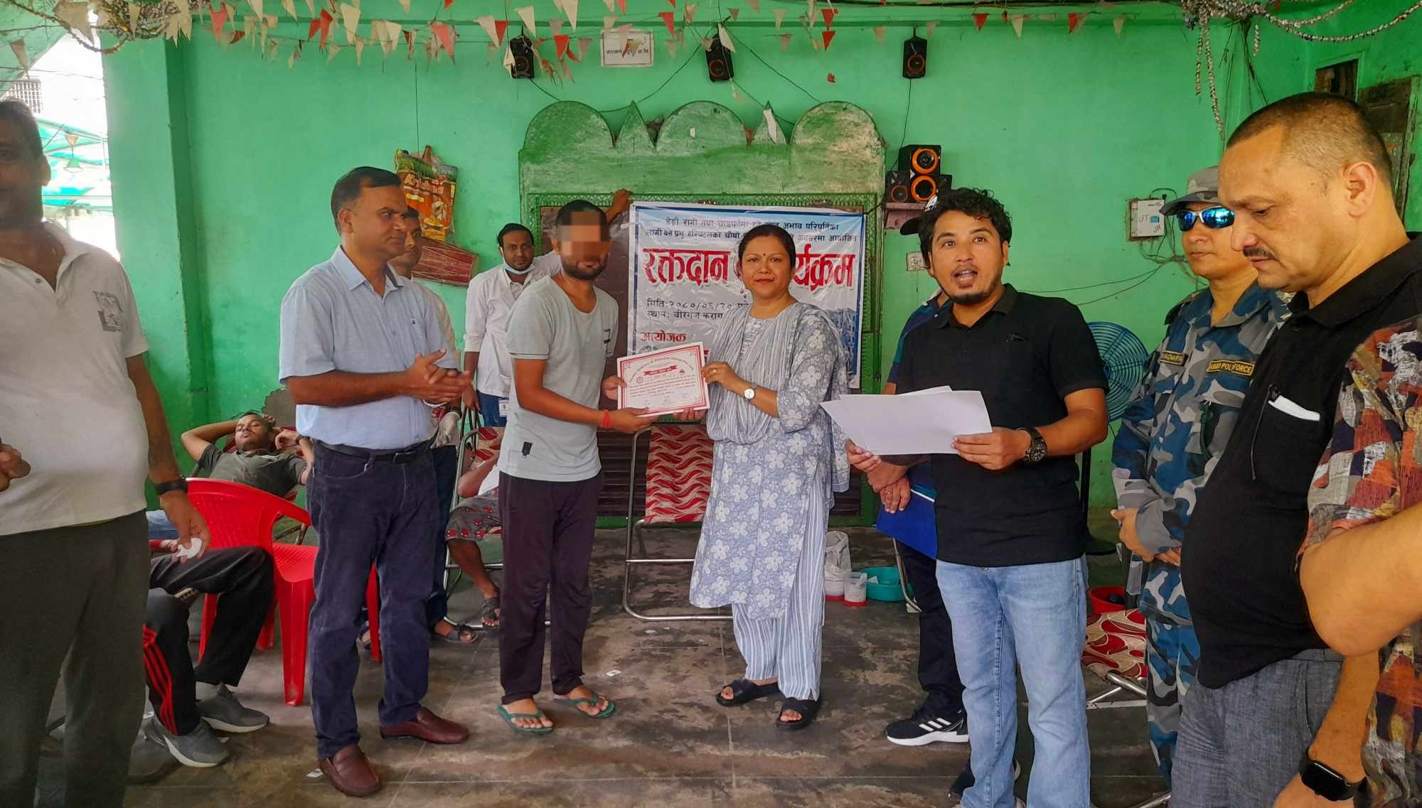 रगतदान गरेका कैदीबन्दीहरुलाई प्रजिअ रेग्मी, सशस्त्र प्रहरी उपरीक्षक किशन कर्मचार्य, प्रहरी नायब उपरीक्षक कुमार विक्रम थापा, अस्पतालका सञ्चालकद्वय डाक्टर मनोज गुप्ता र डाक्टर लक्ष्मी थापा लगायतले रगतदान गरेको प्रमाणपत्र प्रदान गरेका थिए ।