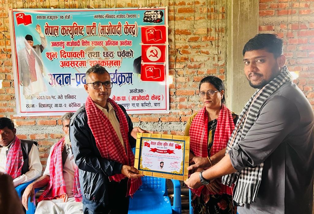 वीरगंज । जनता सङ्ग माओबादी बिशेष रुपान्तरण अभियान अन्त्रगत बाराकाे बिश्रामपुर गाउँपालिकामा दीपावली तथा छठ पर्वकाे शुभकामना अदान प्रदान कार्यक्रम सम्पन्न भएको छ।
