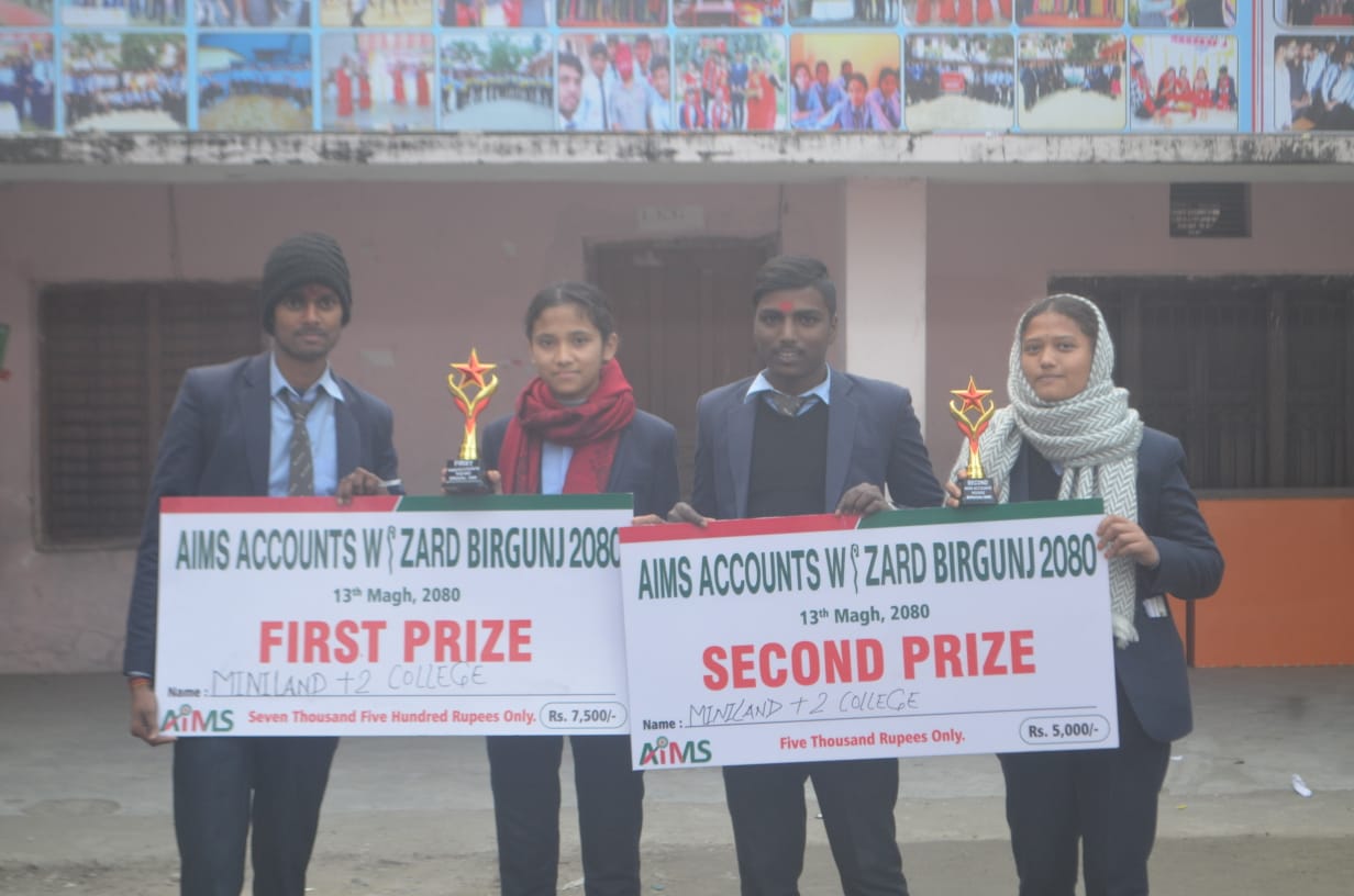 चितवनकाे एमस एकाउन्ट उर्जाडस संस्थाकाे आयाेजना भएकाे प्रतियाेगितामा मिनिलैण्ड क्लेजका पवन कुमार कमकर प्रथम, साेही क्लेजका साहेब पण्डित द्वितिय भएकाे क्लेजका संयोजक दिपक कुमार पटेलले जानकारी दिए ।