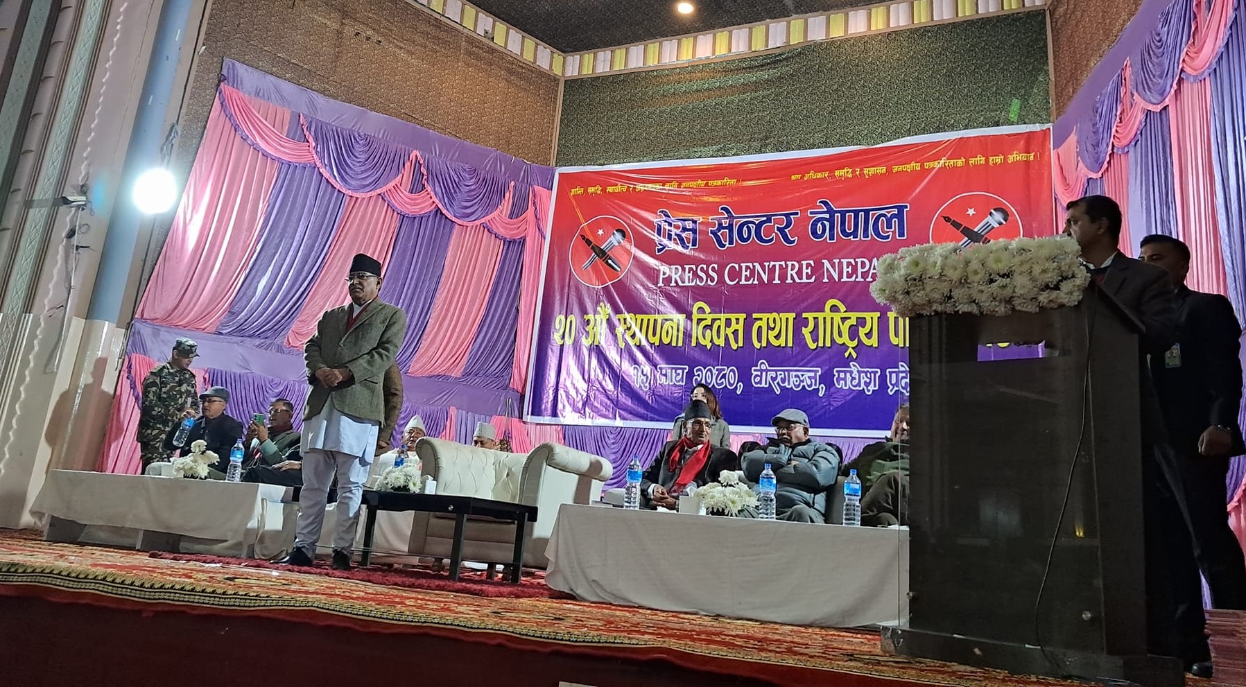 प्रेस सेन्टरका केन्द्रीय अध्यक्ष बिष्णु सापकोटा जुगलको अध्यक्षतामा सम्पन्न स्थापना दिवस तथा राष्ट्रिय परिषद्को बैठकमा नेकपा माओवादी केन्द्रका उपाध्यक्ष अग्नि सापकोटा, उपमहासचिव मातृका यादव, सचिव लिलामणी पाेखरेल, मधेश प्रदेशका उद्योग वाणिज्य मन्त्री सुनिता यादव, वन तथा वातावरण राज्य मन्त्री रहबर अन्सारी, प्रदेश सभा सदस्यहरु लगायतले सम्बोधन गरेका थिए ।