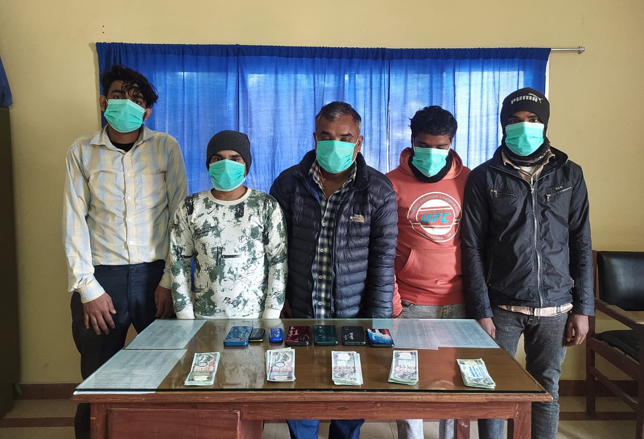 सर्लाहीकाे चन्द्रनगर गाउँपालिका वडा नं. ३ निवासी रामचन्द्र महतो कोईरी, बाराकाे परवानिपुर गाउँपालिका वडा नं. ५ निवासी सुमित साह, संतोष पटेल, वीरगंज महानगरपालिकाकाे वडा नं. १० निवासी बिशाल कुमार श्रीवास्तव र निरज श्रीवास्तवलाई प्रहरीले नियन्त्रणमा लिएकाे जिल्ला प्रहरी कार्यालय बाराकाे प्रवक्ता प्रहरी नायब उपरिइक दधिराम न्याैपानेले जानकारी दिए ।