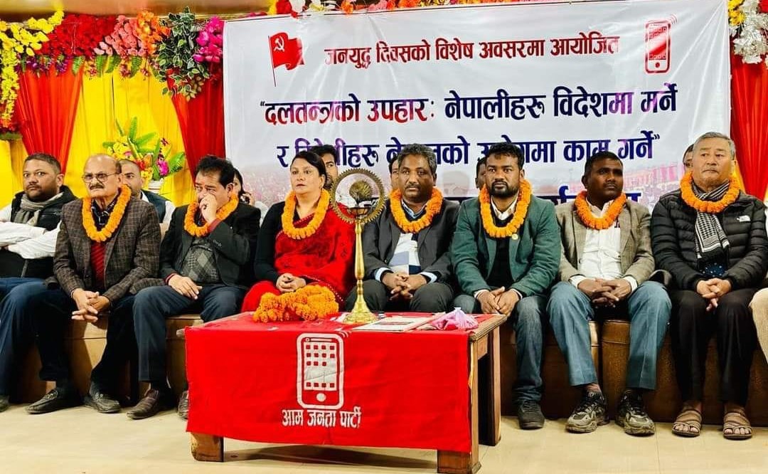 वीरगंज । आम जनता पार्टी (आजपा)ले जनयुद्ध दिवसको अवसरमा मंगलबार वीरगंजमा “दलतन्त्रको उपहार : नेपालीहरु विदेशमा मर्ने र विदेशीहरु नेपालमा काम गर्ने” विषयक अन्तरक्रिया कार्यक्रम गरेको छ ।
