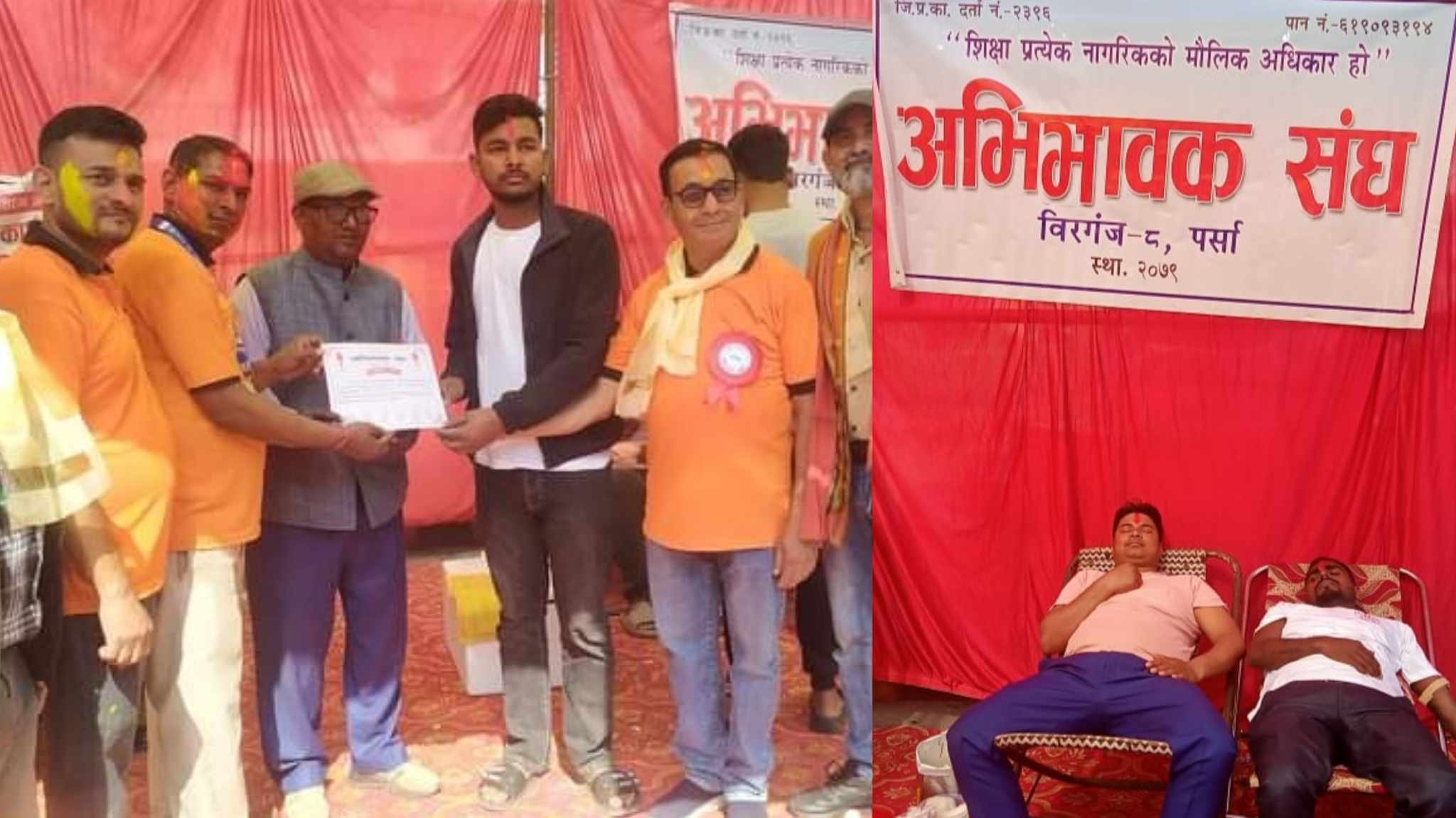 वीरगंज । अभिभवक संघ पर्साकाे आयाेजनामा शनिबार वीरगंजमा रक्तदान कार्यक्रम सम्पन्न भएकाे छ । वीरगंजकाे घण्टाघरस्थित भएकाे कार्यक्रममा ४ महिला सहित ६२ जनाले रक्तदान गरेकाे अभिभावक संघका अध्यक्ष सन्दिप साहले जानकारी दिए ।