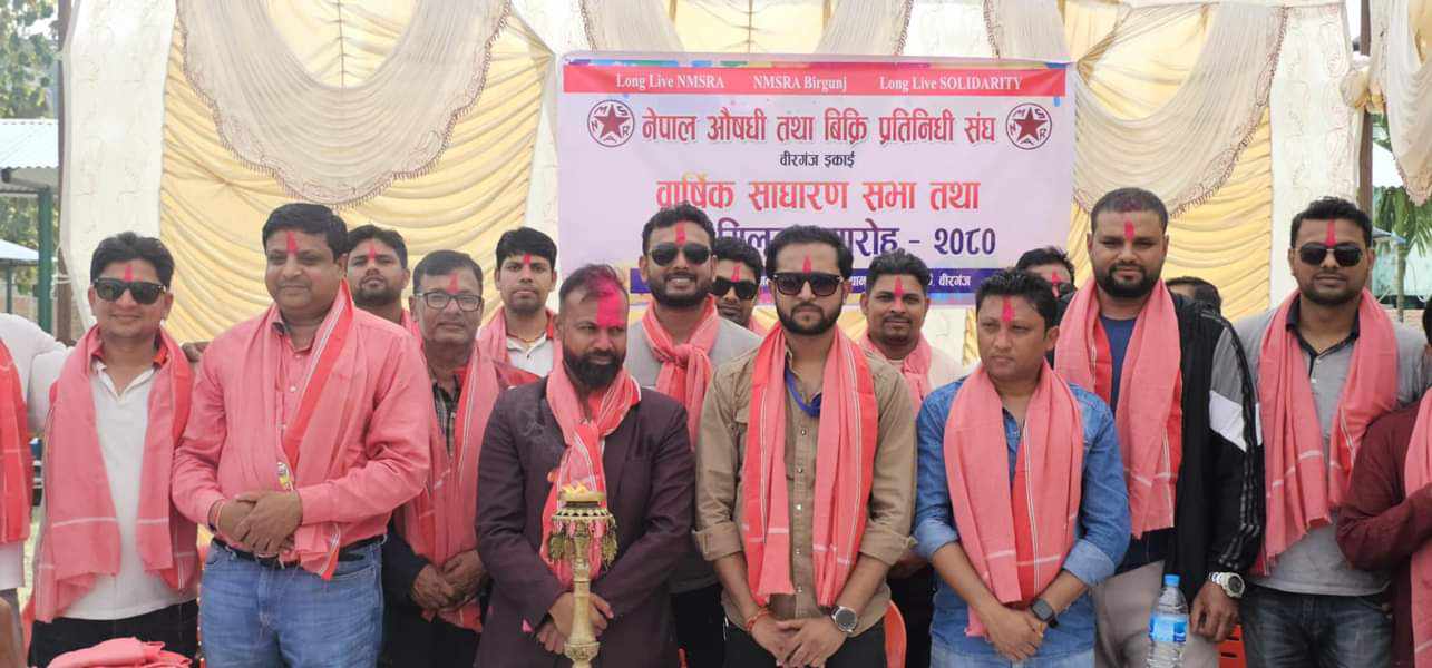 वीरगंज । नेपाल औषधि तथा बिक्री प्रतिनिधि संघ वीरगंज शाखाको वार्षिक साधारण सभा तथा होली मिलन समारोह सम्पन्न भएकाे छ । बाल उधान (चिल्ड्रेन्स पार्क) को प्राङ्गणमा भएकाे कार्यक्रमकाे उद्घाटन नेपाल औषधि तथा बिक्री प्रतिनिधि संघ वीरगंज शाखाका अध्यक्ष राम गोसाईले गरेका थिए ।