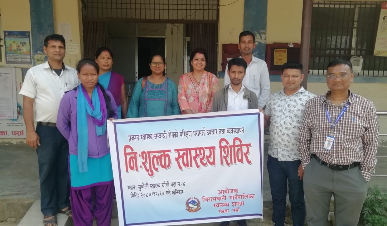 जिराभवानी गाँउपालिकाको वडा नं. ४ स्थित सुपाैली स्वास्थ्य चौकीमा भएको स्वास्थ्य शिविरमा नारायणी अस्पताल वीरगंजका चिकित्सक डा. मन्जु राम, स्वास्थ्यकर्मी खुश्बु मिश्रा, जिराभवानीका स्वास्थ्यकर्मीहरु अजय कुमार दास थारु, सरोज पंडित, ज्ञान किशोर महतो, राज किशोर यादव, सफिकुला अंसारी, मिथिलेश कुमार यादव, संतोष कुमारी चौधरी लगायतकाे टाेलीले स्वास्थ्य चेकजाँच गरेका थिए ।
